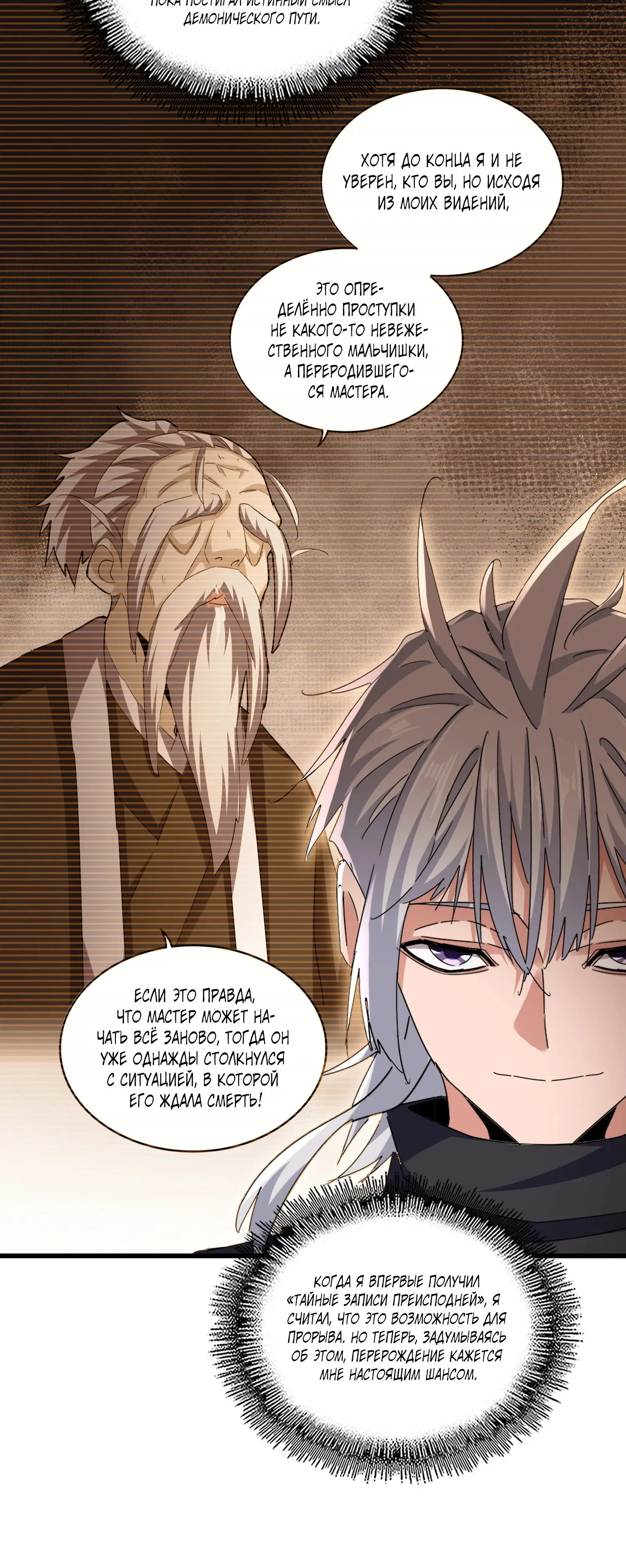 Вот и развитие Чжо Фаня в плане личностного роста и альтруизма. Каждому человеку свойственно меняться. В лучшую или в худшую сторону – всё зависит от самого человека и его внутреннего сердца. Теперь Чжо Фань постигает человечности и не будет таким жестоким, как раньше из-за внутренних демонов, но также не стоит забывать, что он преследует свои цели, поэтому естественно будет манипулировать людей и проявлять жестокость, когда нужно и где нужно. Но, эти манипуляции и жестокие обращения будут иными, нежели раньше, что мне очень нравиться. Автор хорошо поработал.